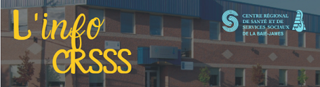 L'info CRSSS est l'infolettre du CRSSS de la Baie-James. Distribuée par courriel selon les besoins, vous pouvez vous abonner en nous faisant la demande à l'adresse : info.crsssbj@ssss.gouv.qc.ca. Merci de nous indiquer aussi votre ville pour compléter notre base de données.
