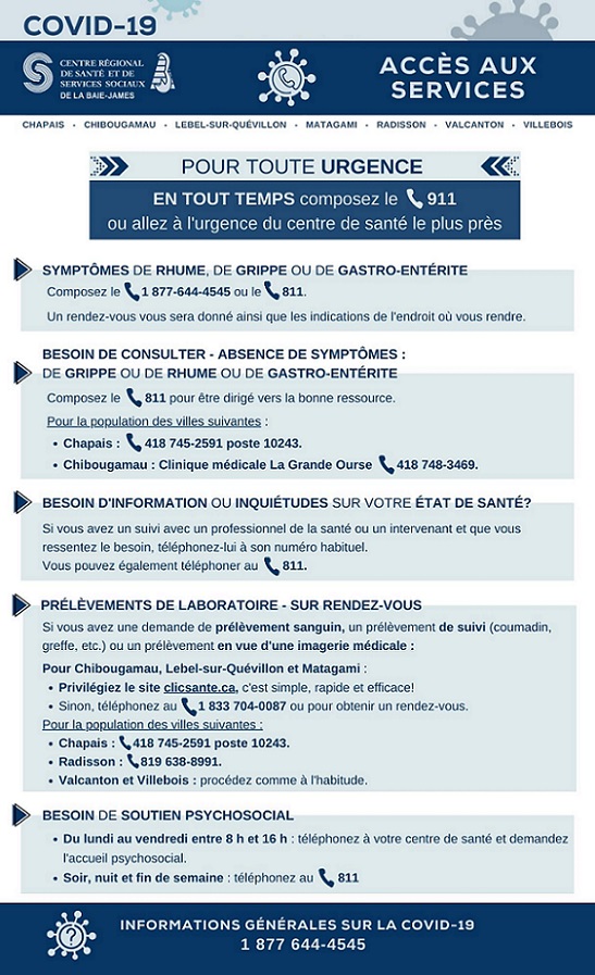 Vous voulez de l'information sur nos services habituels et les services psychosociaux offerts? Cliquez ici.